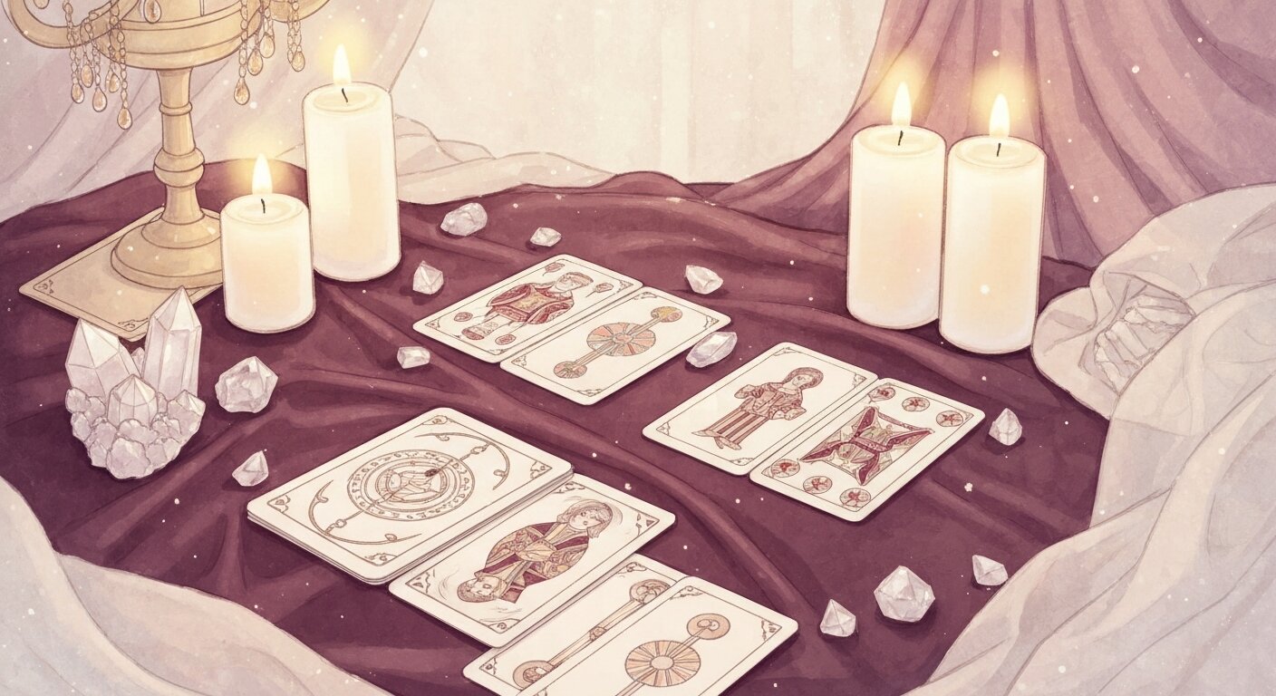 この記事では「中心→十字ライン→四隅→組み合わせ」の4ステップで紹介しましたが、これは数ある読み方のひとつ。 経験豊富な占い師は、カード全体の印象や質問者の状況に合わせて柔軟に読み解いていきます。 セルフ占いの出発点として活用しつつ、自分なりの読み方を育てていってくださいね。